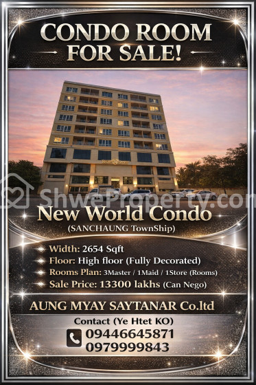 အိမ်ခြံမြေ အမည် : စမ်းချောင်းမြို့နယ်၊New World Condo