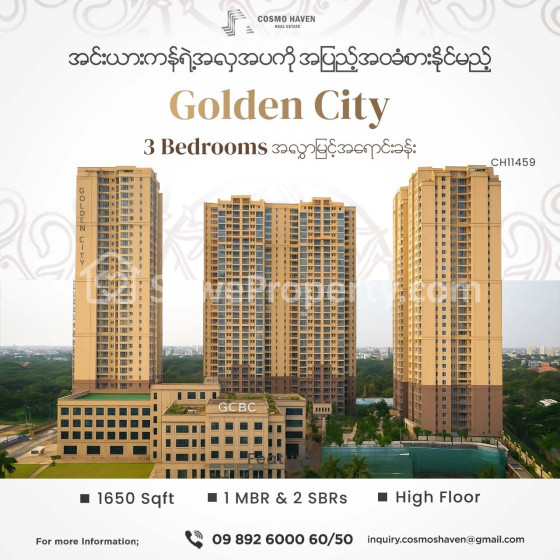 အိမ်ခြံမြေ အမည် : ရန်ကင်းမြို့နယ်ရှိGolden City Condominiumအရောင်း/Golden City Condominium for Sales Yankin Township in Yangon