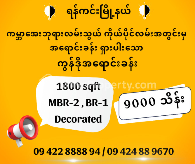 အိမ်ခြံမြေ အမည် : ရန်ကင်းမြို့နယ် ၊ ကမ္ဘာအေးဘုရားလမ်းသွယ် ကိုယ်ပိုင်လမ်းအတွင်းမှ ကွန်ဒိုအရောင်း