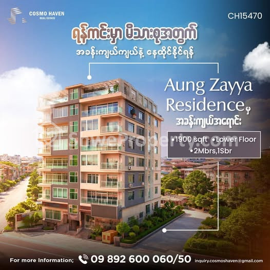အိမ်ခြံမြေ အမည် : ရန်ကင်းမြို့နယ်ရှိAung Zayya Residence Condominiumအရောင်း/Aung Zayya Residence Condominium For Sales Yankin Township In Yangon/09892600050,09892600060
