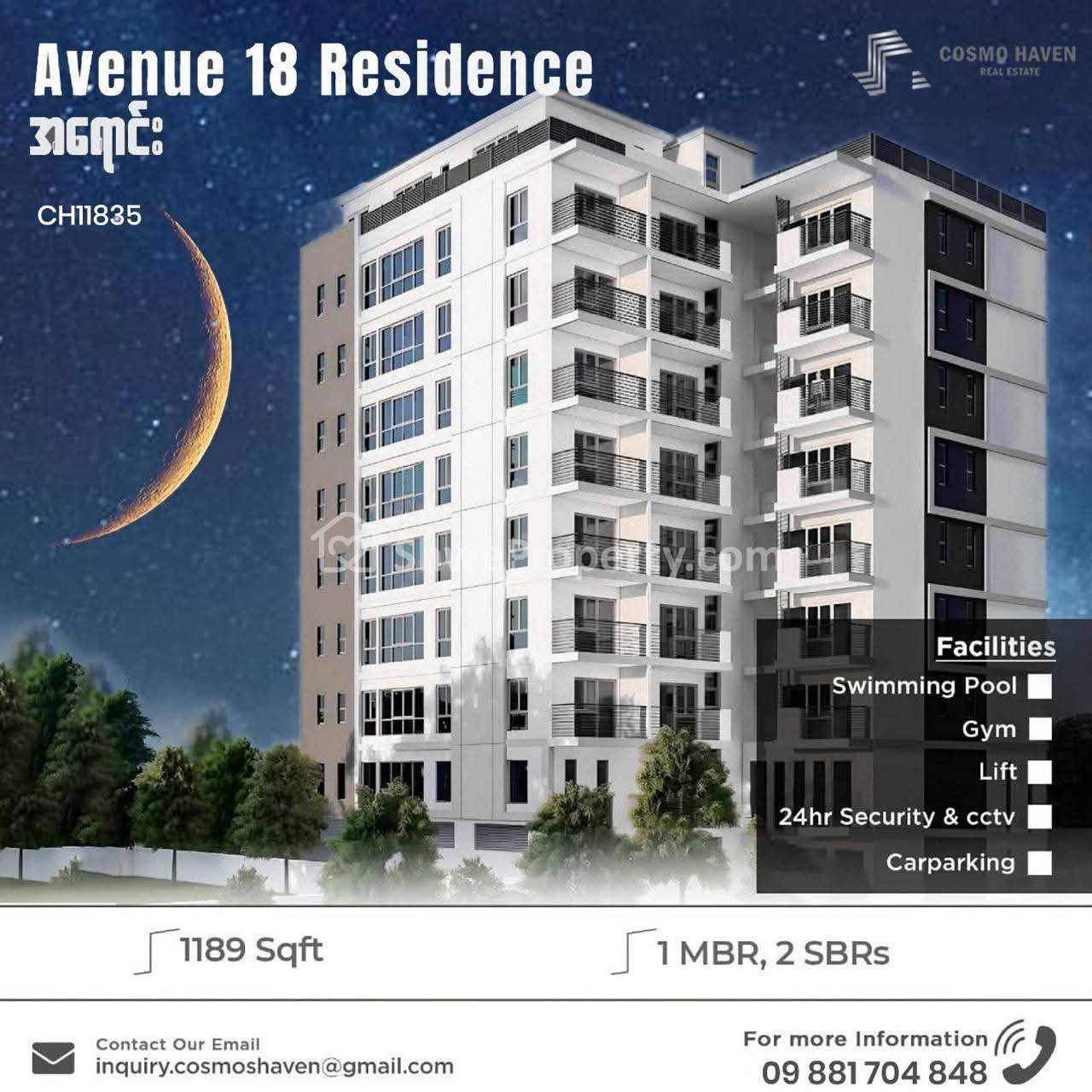 🎉 #ရန်ကင်းမြို့နယ်၊ စိမ်းလဲ့မေရိပ်သာလမ်း မှာ တည်ရှိတဲ့ #Avenue_18_Residence ကွန်ဒိုအခန်း အရောင်းရှိပါတယ် ခင်ဗျာ