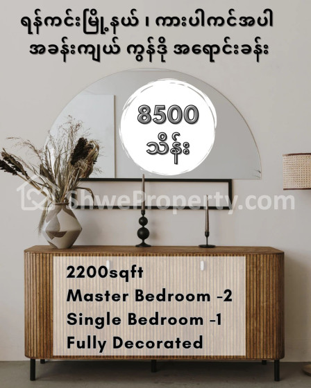 အိပ်ခန်း ၃ ခန်း ရေချိုးခန်း ၃ ခန်း ပါ ရန်ကုန်တိုင်းဒေသကြီး ရန်ကင်း မြို့နယ်ရှိ ရောင်းရန်ရှိသော ကွန်ဒို