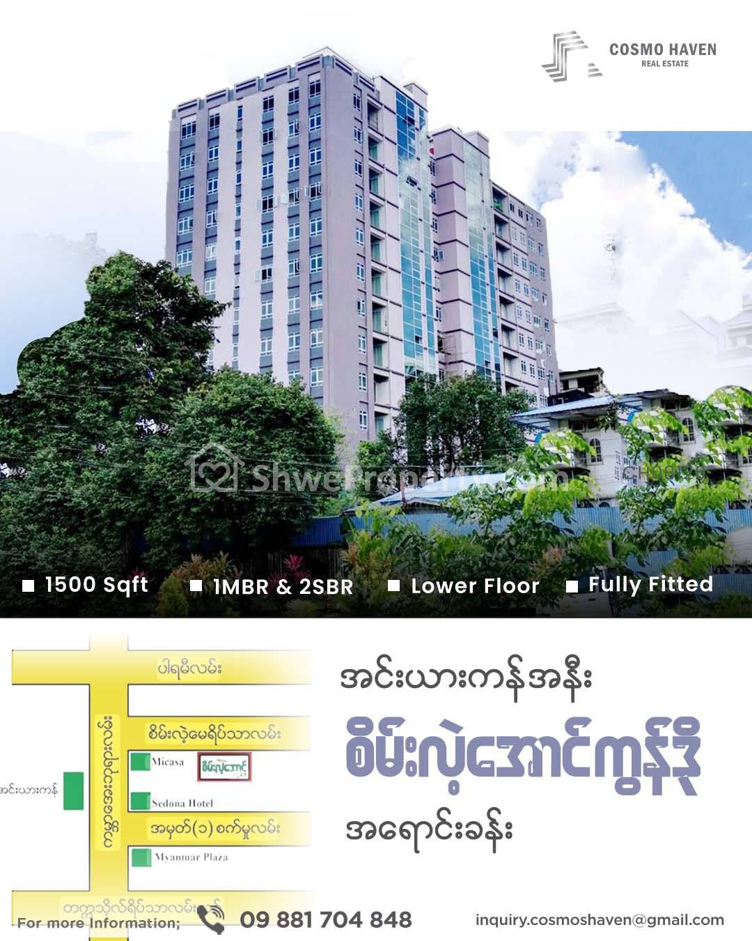 အခန်းဈေးနှုန်းနှင့် အသေးစိတ် သိရှိလိုပါက COSMOHEAVEN Real Estate ကို ယုံကြည်စိတ်ချစွာ ဆက်သွယ်စုံစမ်းနိုင်ပါတယ်ခင်ဗျာ။ 😊