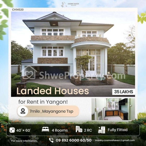 အိမ်ခြံမြေ အမည် : ရန်ကုန်မြို့နယ်ရှိမြို့နယ်စုံနေရာကောင်းလုံးချင်းအိမ်အငှားများ/Landed House for Sales in Yangon/09892600050,09892600060
