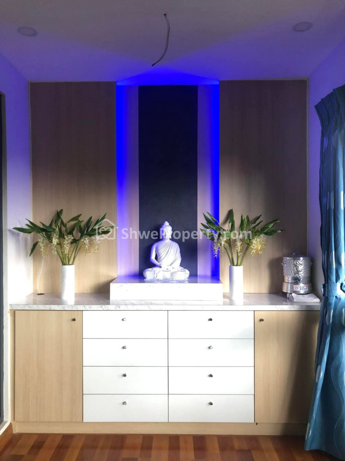 ရှင်းလင်းသန့်ပြန့်တဲ့ ဘုရားခန်းကို တဖက်မှာ ပန်းခင်းလေးတွေရှိတဲ့ ဝရံတာလေးနဲ့ တဖက်မှာတော့ ကြည်လင်တဲ့ ဖန်သားတွေနဲ့ အလှဆင်ထားပါတယ် ...