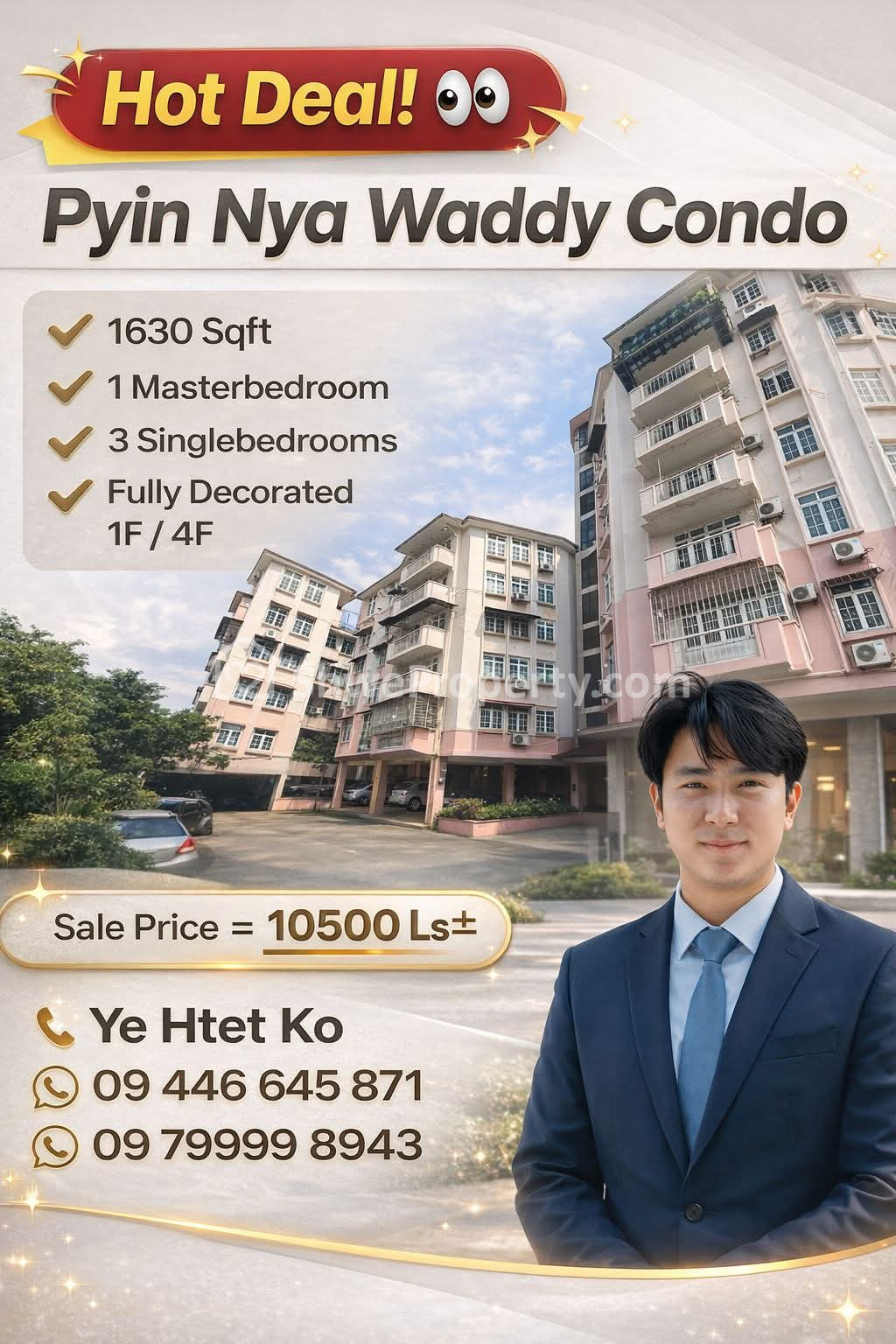 ✅ တိတ်ဆိတ်ငြိမ်သက်ပြီး သွားရေးလာရေးလွယ်ကူတဲ့ မြို့နယ်ထဲက လူကြိုက်အများဆုံးဖြစ်တဲ့ Luxury Condo မှ အရောင်းခန်းကို စိတ်ဝင်စားတယ်ဆိုင်ရင်တော့...