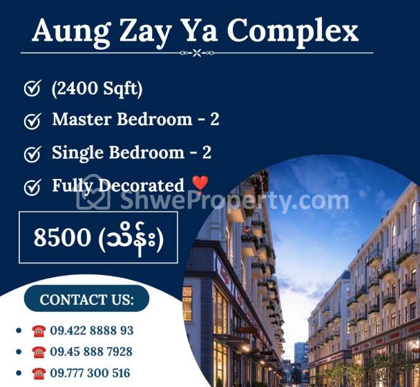 အိမ်ခြံမြေ အမည် : အလုံမြို့နယ်၊ ကမ်းနားလမ်းမပေါ်မှာ တည်ရှိတဲ့ အောင်ဇေယျ ကွန်ဒို Complex မှာ 2400 Sqft ကျယ်ဝန်းတဲ့ ပြင်ဆင်ပြီးသားအခန်းရောင်းမည်