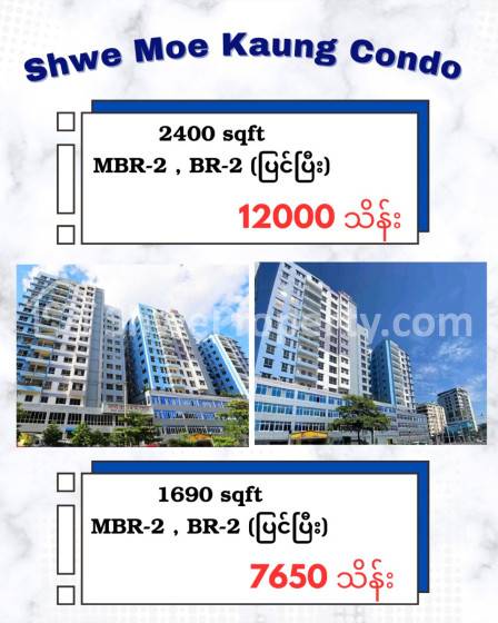 အိမ်ခြံမြေ အမည် : မိုးကောင်းလမ်းမနှင့် အောင်ဇေယျလမ်းထောင့် ရွှေမိုးကောင်းကွန်ဒိုတွင် ပြင်ဆင်ပြီး အခန်း (၂) အခန်းရောင်းမည်