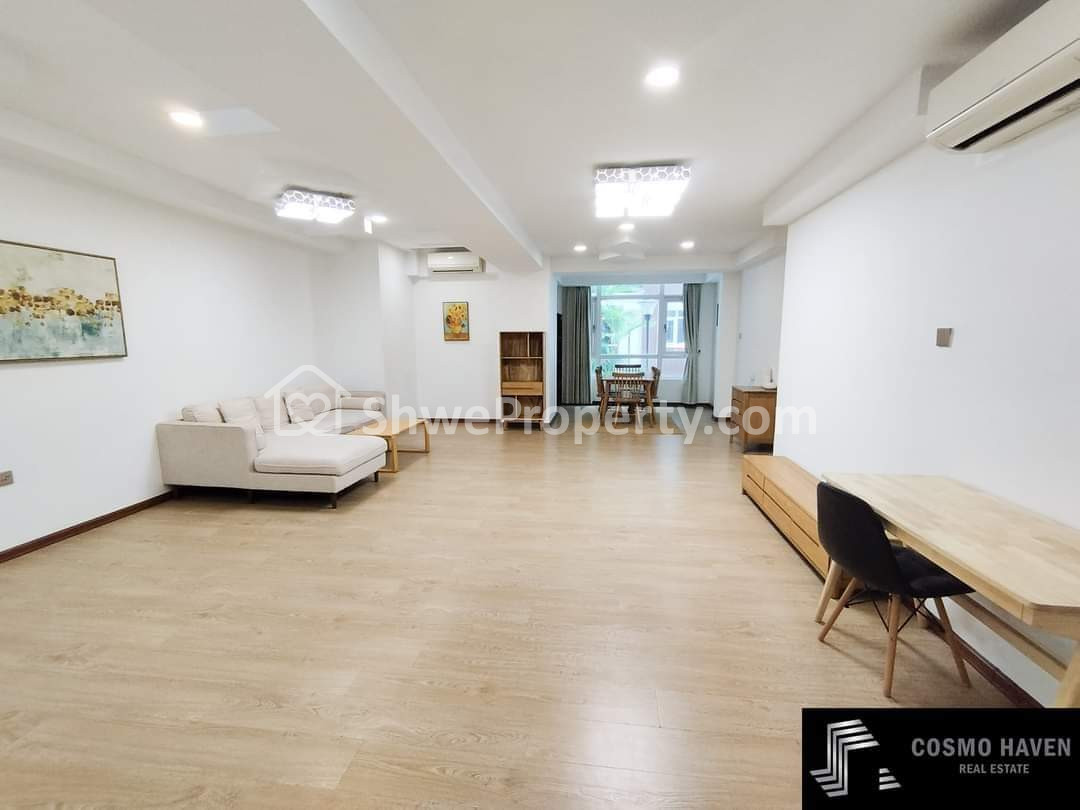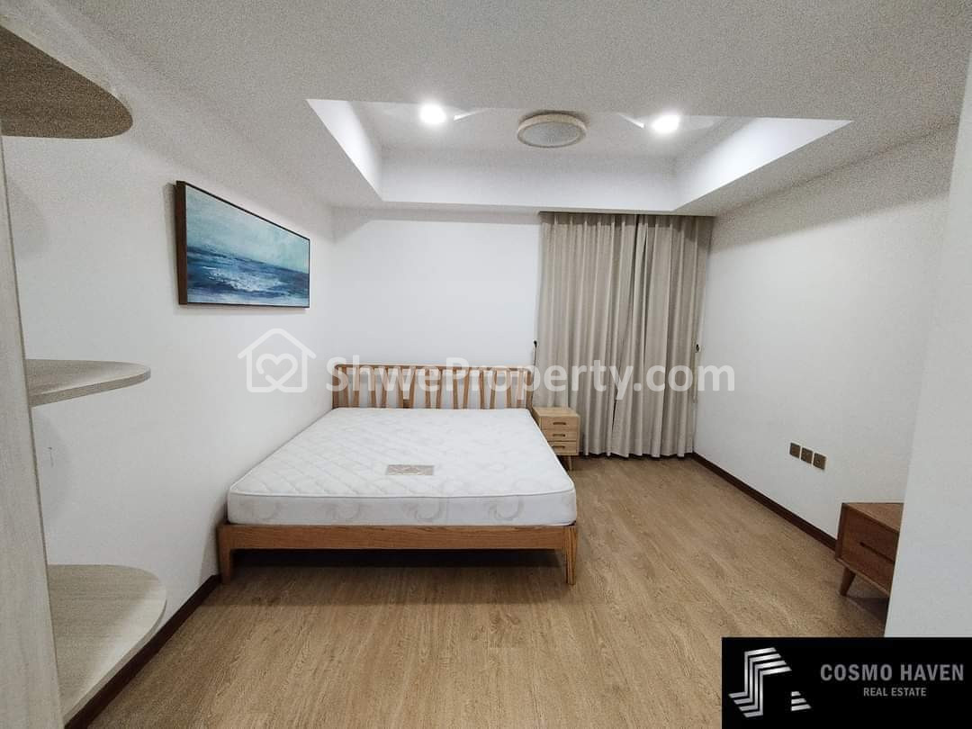 走路5分钟 便能到茵雅湖散步的 高端公寓 大户型 出租,楼层低 ,适合带小孩的家庭居住,位于 主道Pyay路附近,交通出行也非常方便,周边更有 医院与超市 ,日常生活所需 都仅5分钟车程内。