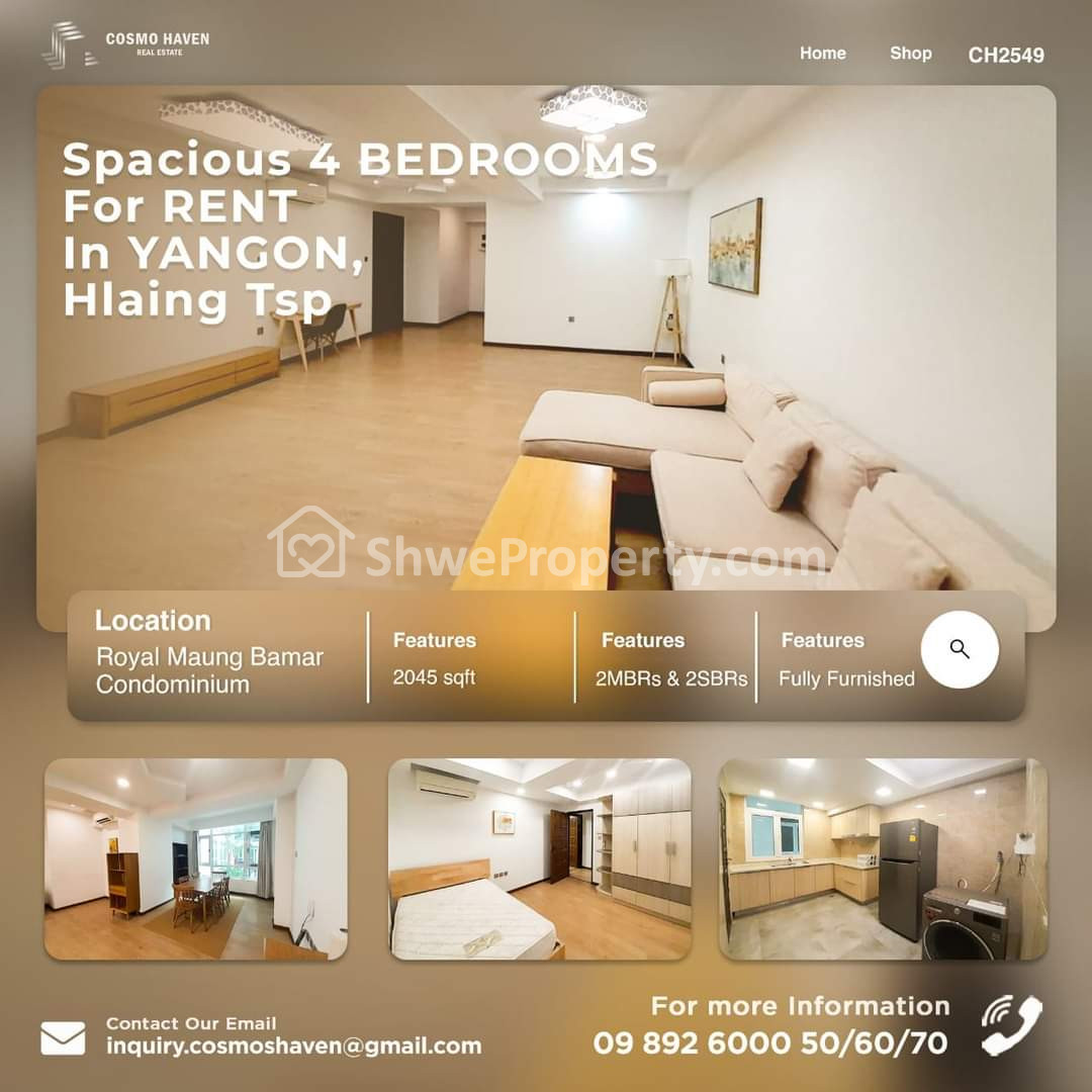အိမ်ခြံမြေ အမည် : The 4 Bedrooms Royal Maung Bamar Condominium for Rent In Hlaing Tsp