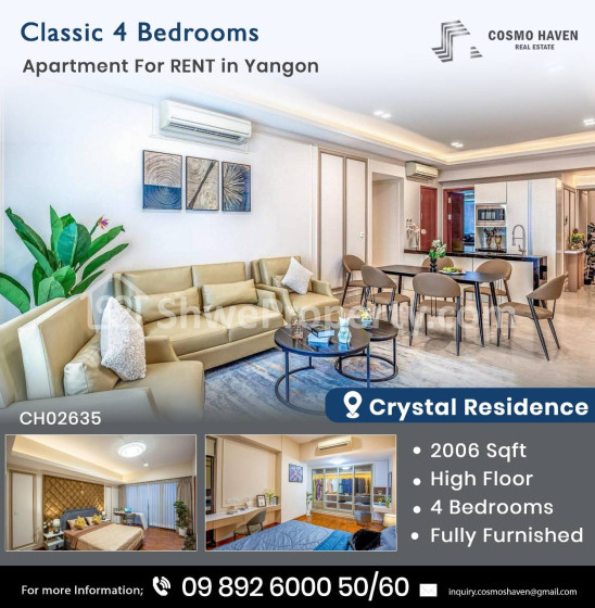 Locate luxurious living in Four-Bedrooms Crystal Residence featuring a modern & classic design at Kamayut 🪴!