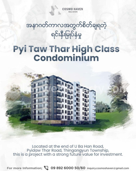 ရင်းနှီးမြှုပ်နှံဖို့ ဒါမှမဟုတ် သက်တောင့်သက်သာနေထိုင်ဖို့ Pyi Taw Thar High Class Condominium က အသင့်တော်ဆုံးရွေးချယ်မှုဖြစ်မှာပါ..........