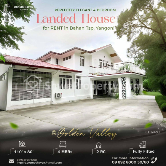 Landed House with spacious compound for Rent at Golden Valley, Bahan Tsp!