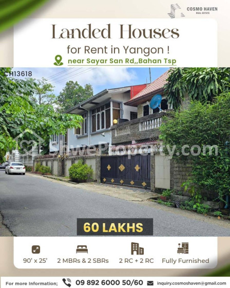 အိမ်ခြံမြေ အမည် : ရန်ကုန်မြို့နယ်ရှိမြို့နယ်စုံနေရာကောင်းလုံးချင်းအိမ်ကောင်းအငှားများ/Landed House for Rent in Yangon