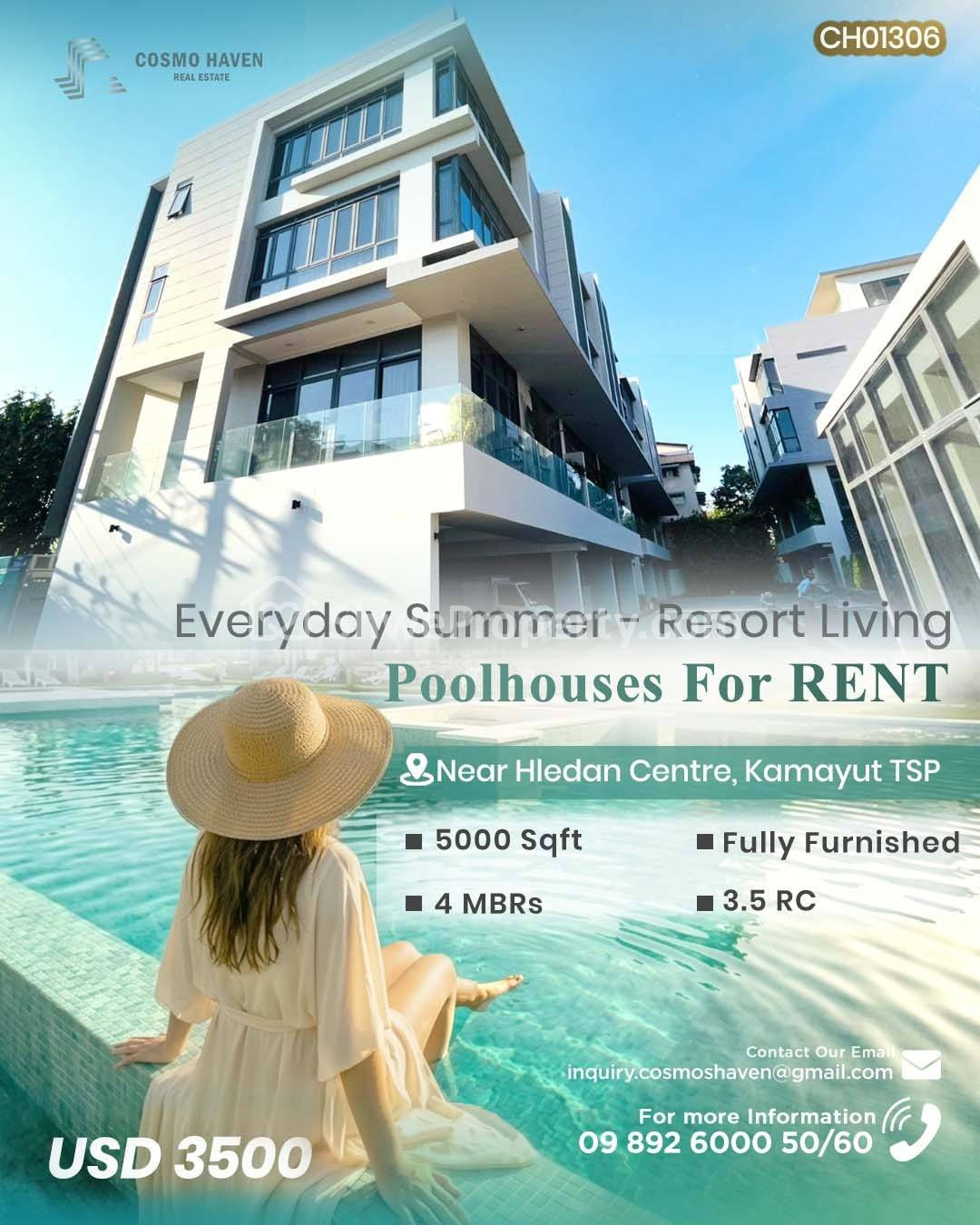အိမ်ခြံမြေ အမည် : ရန်ကုန်မြို့နယ်ရှိမြို့နယ်စုံနေရာကောင်းPool House အငှားများ/Pool House For Rent In Yangon/09892600050,09892600060