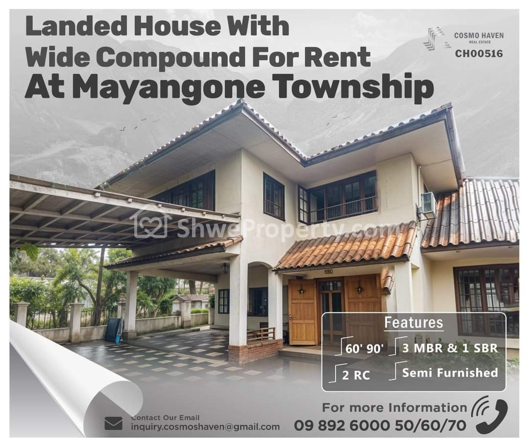 Landed House With Wide Compound For Rent At Mayangone Township📍