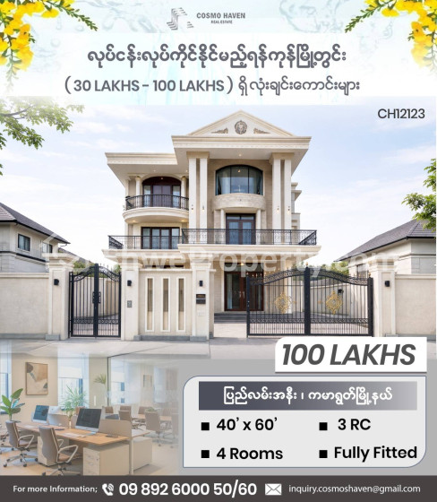 အိမ်ခြံမြေ အမည် : ရန်ကုန်မြို့ရဲ့ မြိုနယ်စုံမှာ officeများ ၊ အခြားသောလုပ်ငန်းများကိုဖွင့်လှစ်နိုင်မည့်လုံးချင်းအိမ်နေရာကောင်းများ/Office for Rent in Yangon/09892600050,09892600060