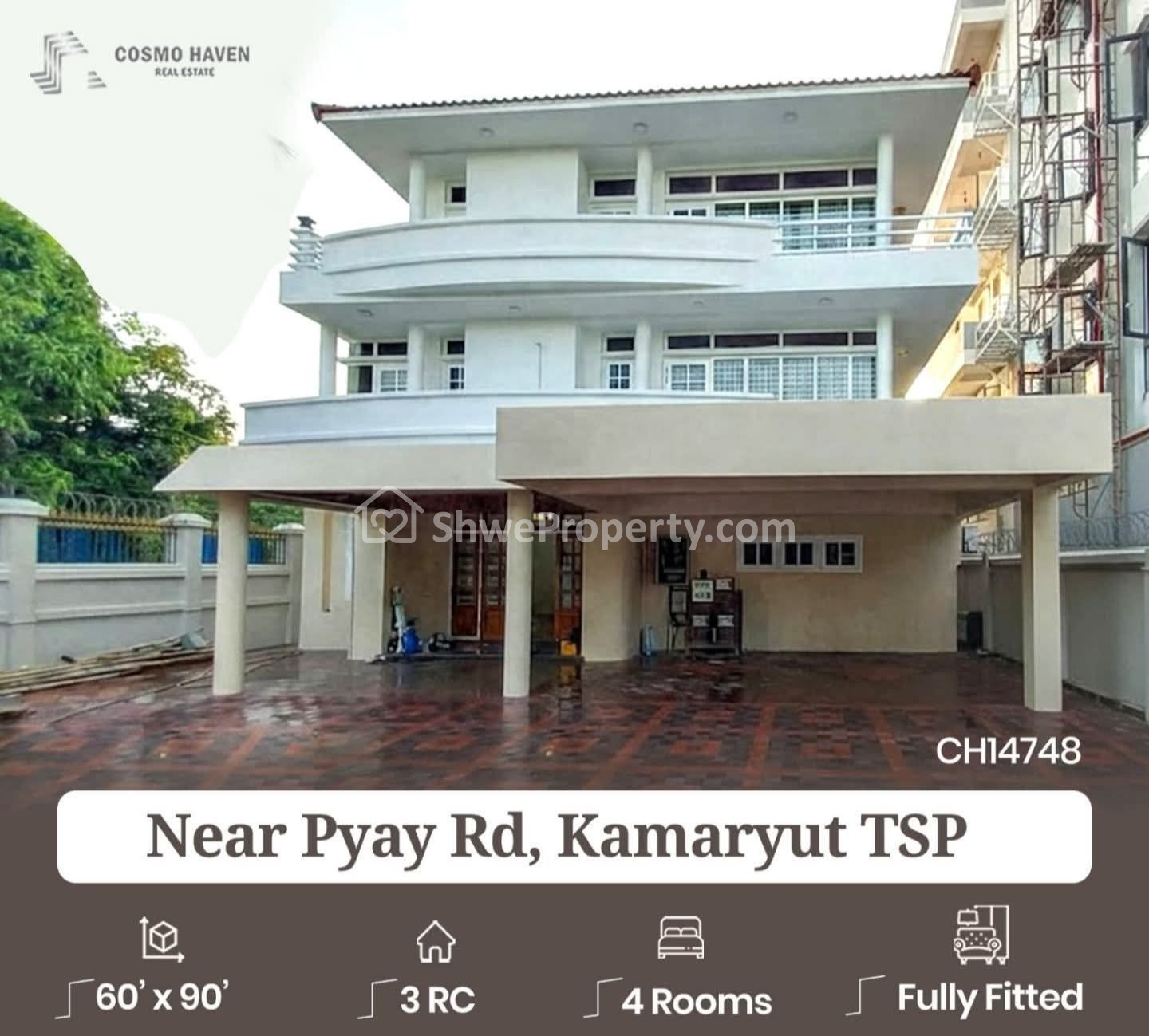 အိပ်ခန်း ၄ ခန်း ရေချိုးခန်း ၄ ခန်း ပါ ရန်ကုန်တိုင်းဒေသကြီး ကမာရွတ် မြို့နယ်ရှိ ငှားရန်ရှိသော ဆိုင်ခန်း