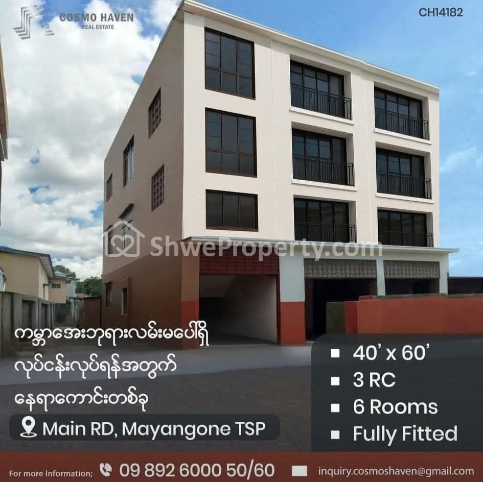 အိပ်ခန်း ၄ ခန်း ရေချိုးခန်း ၄ ခန်း ပါ ရန်ကုန်တိုင်းဒေသကြီး မရမ်းကုန်း မြို့နယ်ရှိ ငှားရန်ရှိသော ဆိုင်ခန်း