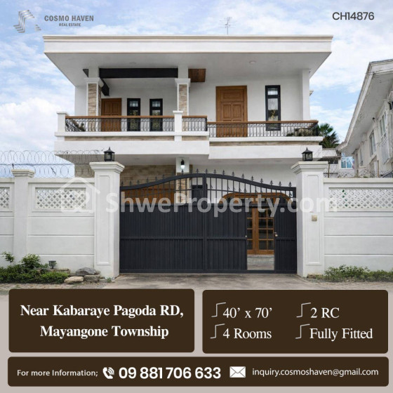 အိပ်ခန်း ၄ ခန်း ရေချိုးခန်း ၄ ခန်း ပါ ရန်ကုန်တိုင်းဒေသကြီး မရမ်းကုန်း မြို့နယ်ရှိ ငှားရန်ရှိသော ဆိုင်ခန်း