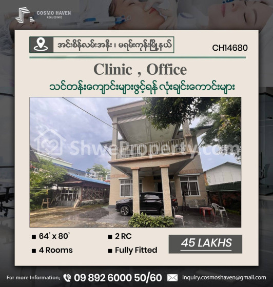 ☀️☀️☀️ 🏗️ရုံးခန်း🏠၊ Clinic 💒နှင့် သင်တန်းကျောင်းများ🏯ဖွင့်လှစ်ရန်အတွက် ရန်ကုန်မြို့ရဲ့ အချက်ချာကျတဲ့ နေရာများတွင် တည်ရှိပြီး ဝန်ထမ်းများအတွက် သွားလာရလွယ်ကူအဆင်ပြေစေတဲ့ 💸💸 သိန်း ၃၀ မှ သိန်း ၁၅၀ 💸💸အတွင်းရှိ လုံးချင်းကောင်းများကို လူကြီးမင်းတို့စိတ်ကြိုက် အချိန်ကုန်သက်သာစွာ ရွေးချယ်နိုင်ရန် Cosmo Haven မှတစုတစည်းတည်းဖော်ပြပေးလိုက်ပါတယ်ရှင့်။🎄🎄🆙️🆙️