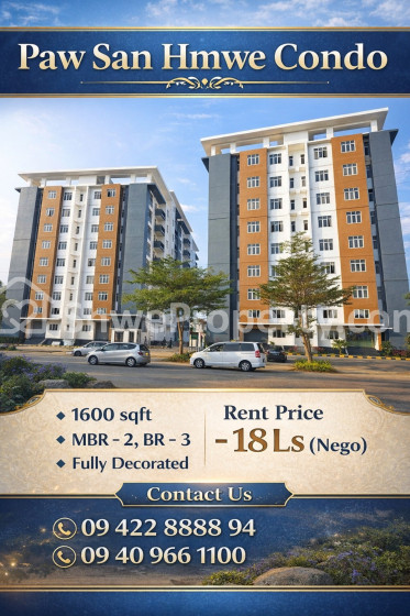 📍မိသားစုနဲ့ပဲဖြစ်ဖြစ်၊ အေးအေးဆေးဆေး နေချင်သူများအတွက်ပဲဖြစ်ဖြစ် အဆင်ပြေဆုံးဖြစ်မယ့် Paw San Hmwe Condo က အကျယ်အဝန်း 1600 sqft ရှိတဲ့ အခန်းကျယ်ကြီးကို အခုပဲ ငှားရမ်းနိုင်ပါပြီ။ 🏠✨