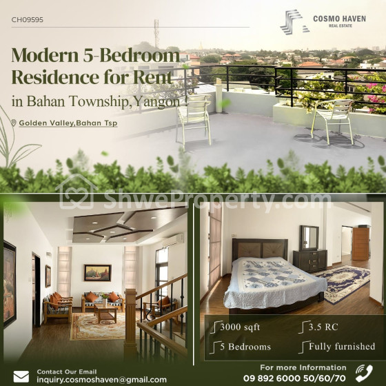အိမ်ခြံမြေ အမည် : Modern 5-Bedrooms Residence for Rent Bahan Township in Yangon