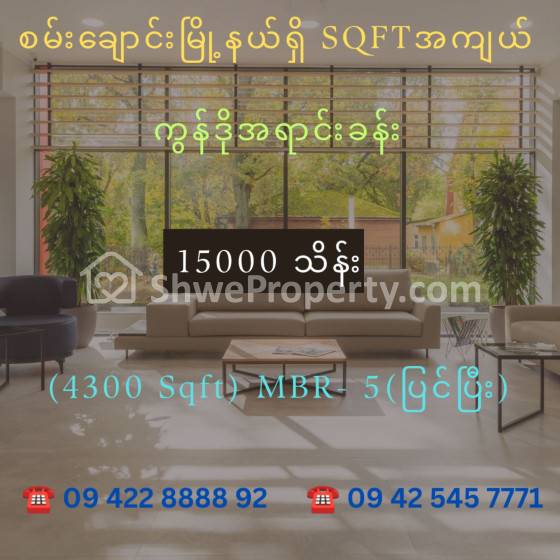 အိမ်ခြံမြေ အမည် : စမ်းချောင်းမြို့နယ်ရှိပတ်ဝန်းကျင်ကောင်း လမ်းသန့် အရောင်းခန်းအလွန်ရှားပါးသော Sqft အကျယ်ကွန်ဒိုအရောင်း