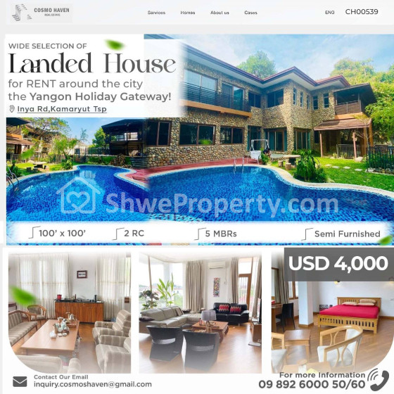 အိမ်ခြံမြေ အမည် : Landed House for Rent Kamayut Township in Yangon