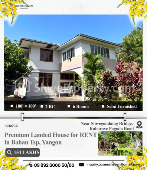 အိမ်ခြံမြေ အမည် : နှစ်သစ်မှာရန်ကုန်မြို့တွင်ကိုယ်ပိုင်ခြံ၀န်းနဲ့နေထိုင်လိုသောလူကြီးမင်းများအတွက်လုံးချင်းအိမ်အငှားများ/Landed House For Rent In Yangon/09892600050,09892600060