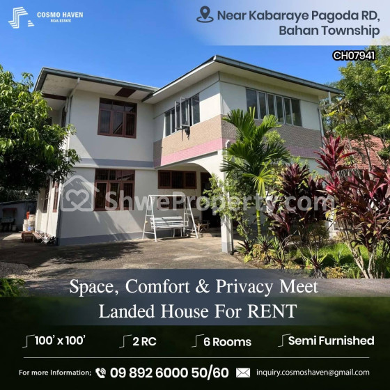 အိမ်ခြံမြေ အမည် : ဗဟန်းမြို့နယ်ရှိနေရာကောင်းလုံးချင်းအိမ်ကောင်းအငှား/Landed House for Rent Bahan Township in Yangon/09892600050,09892600060