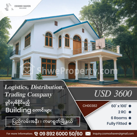 ⚡#Logistics Company, 📦#Distribution Company, 🏷️#Trading Company, #Head - Office များကို ဝန်ထမ်းဦးရေများများဖြင့်၊ ကားပါကင်အတွက်စိတ်ပူစရာမလိုဘဲ ၊ ဝန်ထမ်းများ သွားလာရလွယ်ကူကာ လူကြီးမင်းတို့လိုအပ်သလို ပြင်ဆင်ဖွင့်လှစ်နိုင်တဲ့ မြို့နယ်စုံရှိနေရာကောင်းများကို လွယ်ကူလျင်မြန်စွာ ရွှေးချယ်နိုင်စေရန် Cosmo Haven မှတစုတစည်းဖော်ပြပေးလိုက်ပါတယ်ခင်ဗျာ။🆙️