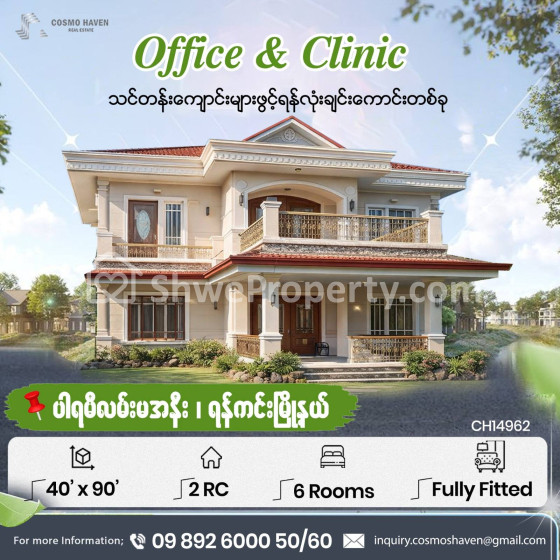 အိမ်ခြံမြေ အမည် : ပါရမီလမ်းမအနီးရှိ Office များ ၊ Clinic များ ဖွင့်လှစ်ရန် နေရာကောင်းတစ်ခု/Office for Rent Yankin Township in Yangon/09892600050,09892600060