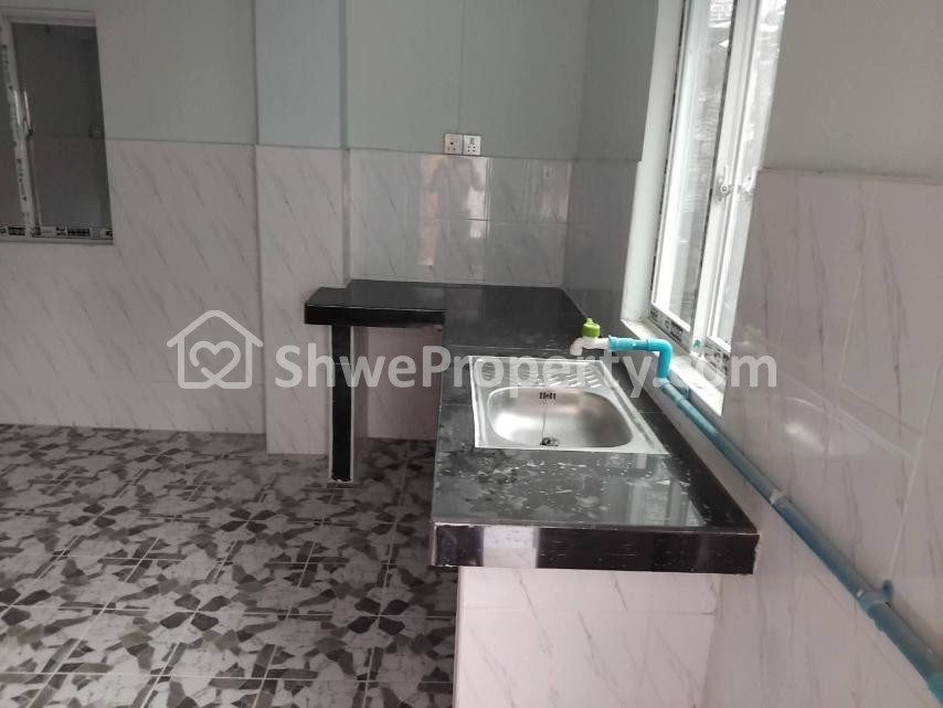 နောက်ဖေးမီးဖိုချောင်ကြွေပြားခင်း/နရံတစ်၀က်ကိုကြွေပြားကပ်ထားပါတယ်