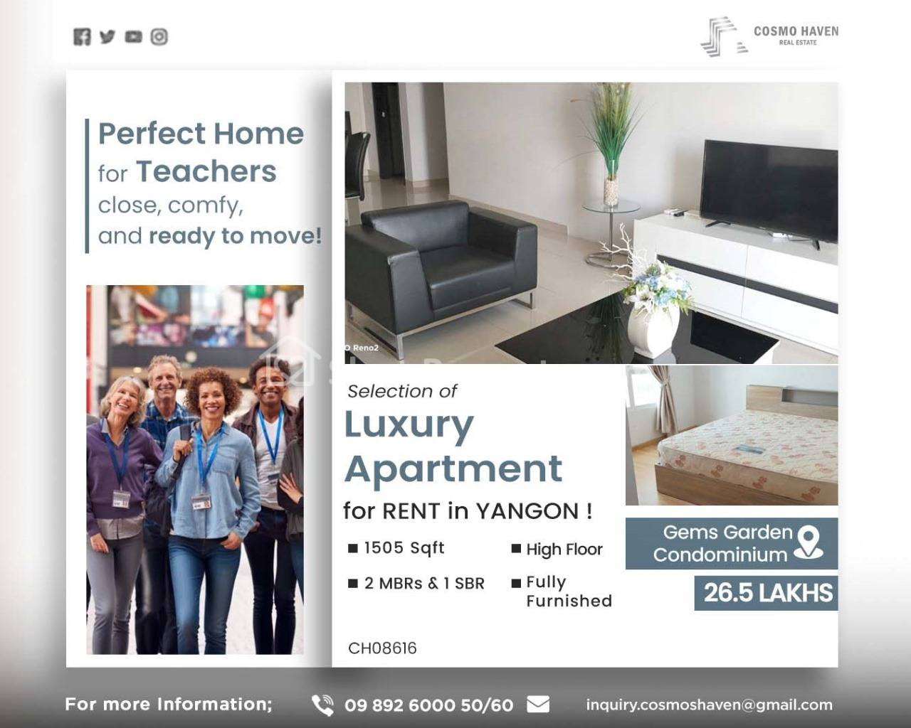 အိမ်ခြံမြေ အမည် : လှိုင်မြို့နယ်ရှိ Gems Garden Condominium အငှား / Luxury Condominium for Rent Hlaing Township In Yangon