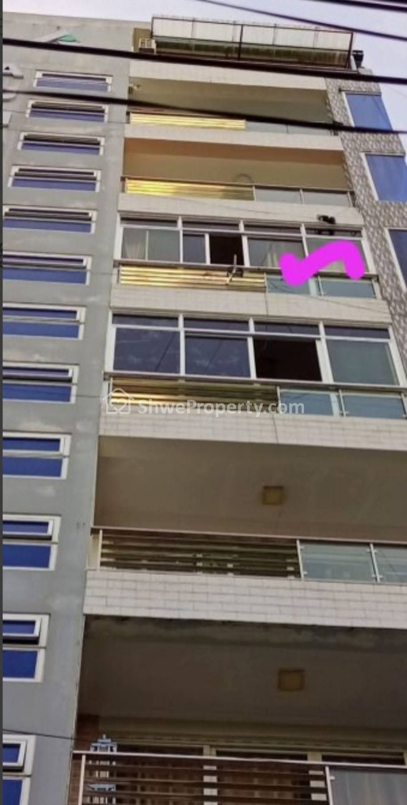 ရန်ကုန်တိုင်းဒေသကြီး၊ တောင်ဥက္ကလာမြို့နယ်၊ (၄)ရပ်ကွက်၊ ဗြဟ္မစိုရ်လမ်း (၄၀ပေ × ၆၀ပေ) ရှိ မြေကွက်ပေါ်တွင် ဆောက်လုပ်ထားသော ၂ခန်းတွဲ ၈ထပ်ခွဲတိုက်၊ ဓါတ်လှေကားပါ၊