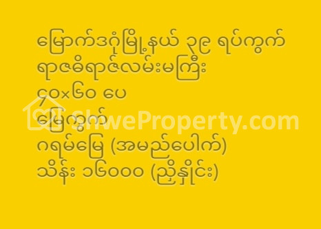 ရန်ကုန်တိုင်းဒေသကြီး ဒဂုံမြို့သစ်မြောက်ပိုင်း ရောင်းရန်ရှိသော မြေကွက် / ခြံ
