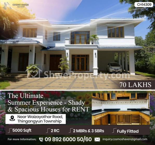 အိမ်ခြံမြေ အမည် : လူကြီးမင်းတို့လိုအပ်ချက်နဲ့ ကိုက်ညီသောလုံးချင်းအိမ်ကောင်းစုစည်းမှုများ/Landed House For Rent In Yangon/09892600050,09892600060