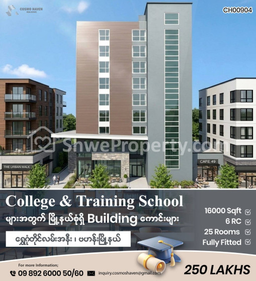 အိမ်ခြံမြေ အမည် : Working Space ကျယ်ကျယ်ဖြင့် Collegeများ၊ Training School များကို ဖွင့်လှစ်ရန် အတွက်နေရာကောင်း များ/Office for Rent in Yangon/09892600050,09892600060