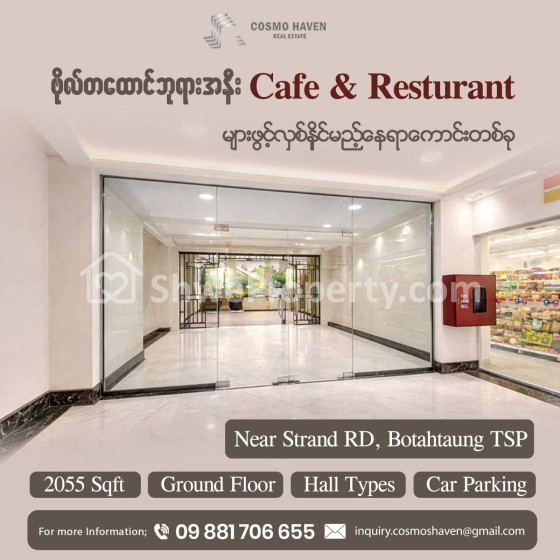 အိမ်ခြံမြေ အမည် : ဗိုလ်တထောင်ဘုရားကြီးအနီးတွင် Café & Restaurant /Floral Shop များဖွင့်ရန် လူစည်သော Location ကောင်းတစ်ခု/Office for Rent Botahtaung Township in Yangon/09892600050,09892600060