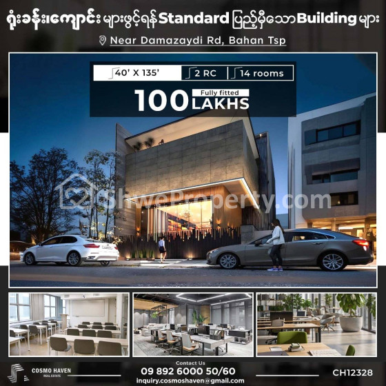ားလာရလွယ်ကူပြီး အချက်ချာကျတဲ့အပြင် လူကြီးမင်ရဲ့လုပ်ငန်းကိုပါထင်ဟက်စေမည့် Location ၊ ⛲ကျယ်ဝန်းသော Space၊ 🏆Standard ပြည့်မှီတဲ့နေရာများကို လူကြီးမင်းတိုရဲ့ ရုံးခန်းများ၊ ကျောင်းများအတွက်နေရာသစ်များကိုပြောင်းရွေ့ချင်တာပဲဖြစ်ဖြစ်၊တိုးချဲ့ချင်တာပဲဖြစ်ဖြစ် ⏱အချိန်ကုန်သက်သာစွာ ရွေးချယ်နိုင်စေရန်အတွက် ရန်ကုန်မြို့ရှိစည်ကားပြီး အချက်အချာကျတဲ့ နေရာ 🏣Commercial Building ကောင်းများကို လုပ်ငန်းရှင်လူကြီးမင်းများအတွက် Cosmo Haven မှ🔍ရွေးချယ်ပြီး တစ်စုတစ်စည်းထဲဖော်ပြပေးလိုက်ပါတယ်ခင်ဗျာ။✨🧨🧨🧨