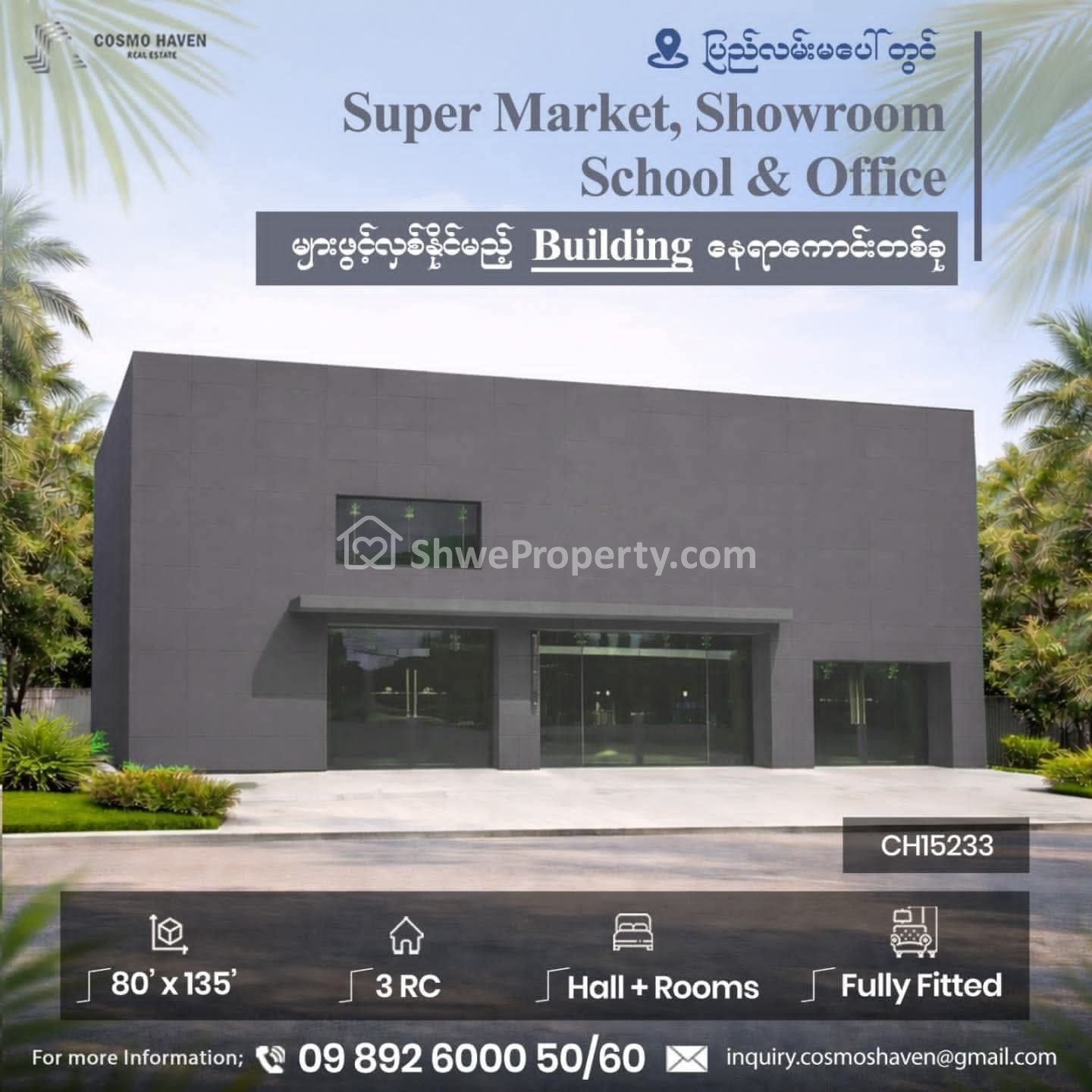 🌴🌴Regarding commercial properties, we have long-term cooperation with various commercial space in Yangon and customer will be able to know the information and prices of commercial properties in Yangon through us and comfortable with our One Stop Commercial Services ..