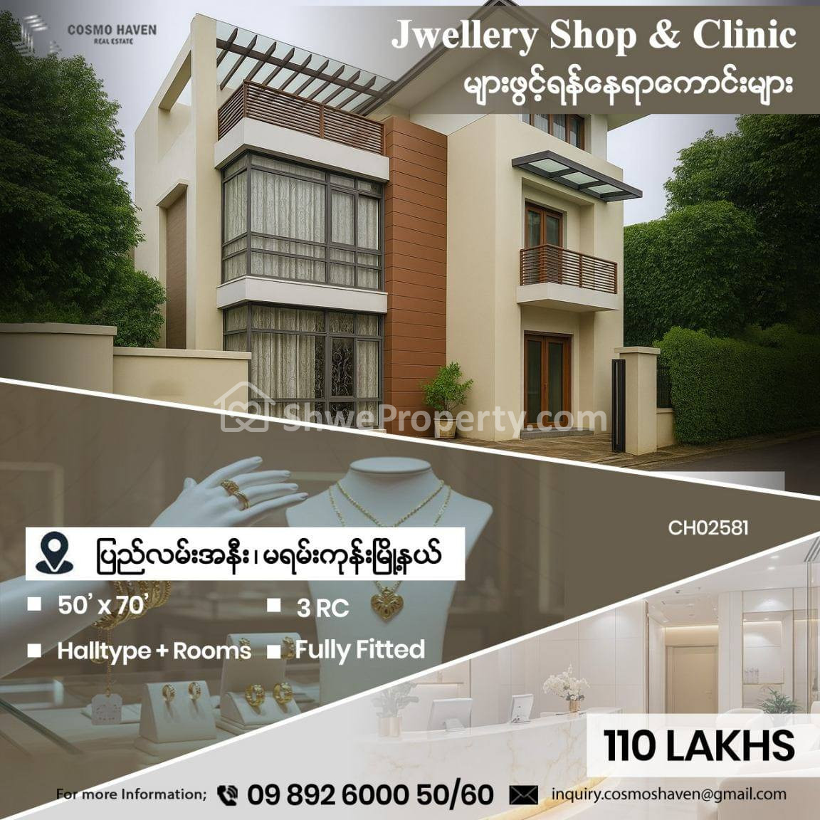 🧧🧧🧧 ရန်ကုန်မြို့ရဲ့ High-end ဖြစ်တဲ့နေရာတွေမှာ 💎Jewellery Showroom များ၊ 🧿Aesthetic Clinic များ ၊ 🗂️ရုံးခန်းမျာကို ဖွင့်လှစ်ချင်တဲ့လူကြီးမင်းများအတွက် 🛣️Location ကောင်းမွန်ပြီး ကိုယ်ပိုင်ခြံဝန်းဖြစ်လို ကားပါကင်အတွက်စိတ်ပူစရာမလိုဘဲ ၊ Customer နှင့် ဝန်ထမ်းများ သွားလာရလွယ်ကူကာ လူကြီးမင်းတို့လိုအပ်သလို ပြင်ဆင်ဖွင့်လှစ်နိုင်တဲ့ မြို့နယ်စုံရှိ နေရာကောင်းများကို အချိန်ကုန်သက်သာစွာ ရွေးချယ်နိုင်ရန် Cosmo Havenမှ တစုတစည်းတည်းဖော်ပြပေးလိုက်ပါတယ်ခင်ဗျာ။✨✨✨