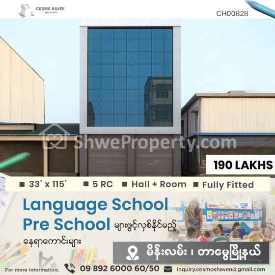 🈵🈵🈵 Language Centre,🏫Pre - School 🏨Training Centreများကို ရန်ကုန်မြိုရှိ မြိုနယ်စုံနေရာကောင်းများတွင် ဖွင့်လှစ်ချင်တဲ့လူကြီးမင်းများအတွက် သွားလာရလွယ်ကူပြီး၊ လူစည်ကားသည့် နေရာများတွင်ဖြစ်လို လုပ်ငန်းရှင်လူကြီးမင်းတို့ အချိန်မကုန်ဘဲရွှေးချယ်နိုင်စေရန် Cosmo Haven မှတစုတစည်းတည်းဖော်ပြပေးလိုက်ပါတယ်ခင်ဗျာ။