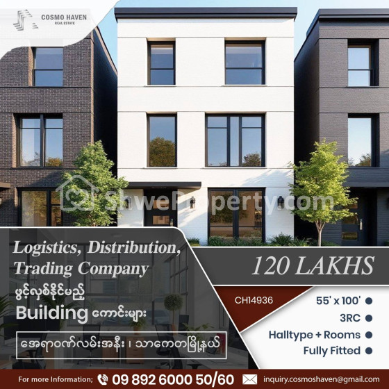 ⚡#Logistics Company, 📦#Distribution Company, 🏷️#Trading Company, #Head - Office များကို ဝန်ထမ်းဦးရေများများဖြင့်၊ ကားပါကင်အတွက်စိတ်ပူစရာမလိုဘဲ ၊ ဝန်ထမ်းများ သွားလာရလွယ်ကူကာ လူကြီးမင်းတို့လိုအပ်သလို ပြင်ဆင်ဖွင့်လှစ်နိုင်တဲ့ မြို့နယ်စုံရှိနေရာကောင်းများကို လွယ်ကူလျင်မြန်စွာ ရွှေးချယ်နိုင်စေရန် Cosmo Haven မှတစုတစည်းဖော်ပြပေးလိုက်ပါတယ်ခင်ဗျာ။🆙️