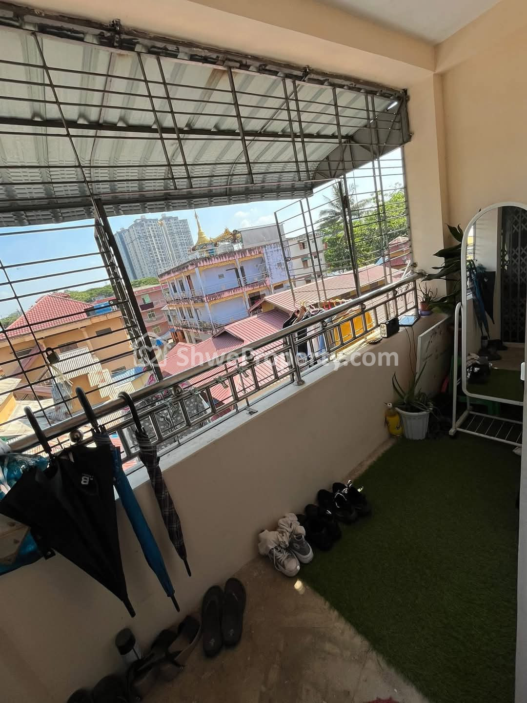 - အရှေ့ အနောက် ဝရံတာ သံပန်းနဲ့ Sun shade တပ်ပြီး