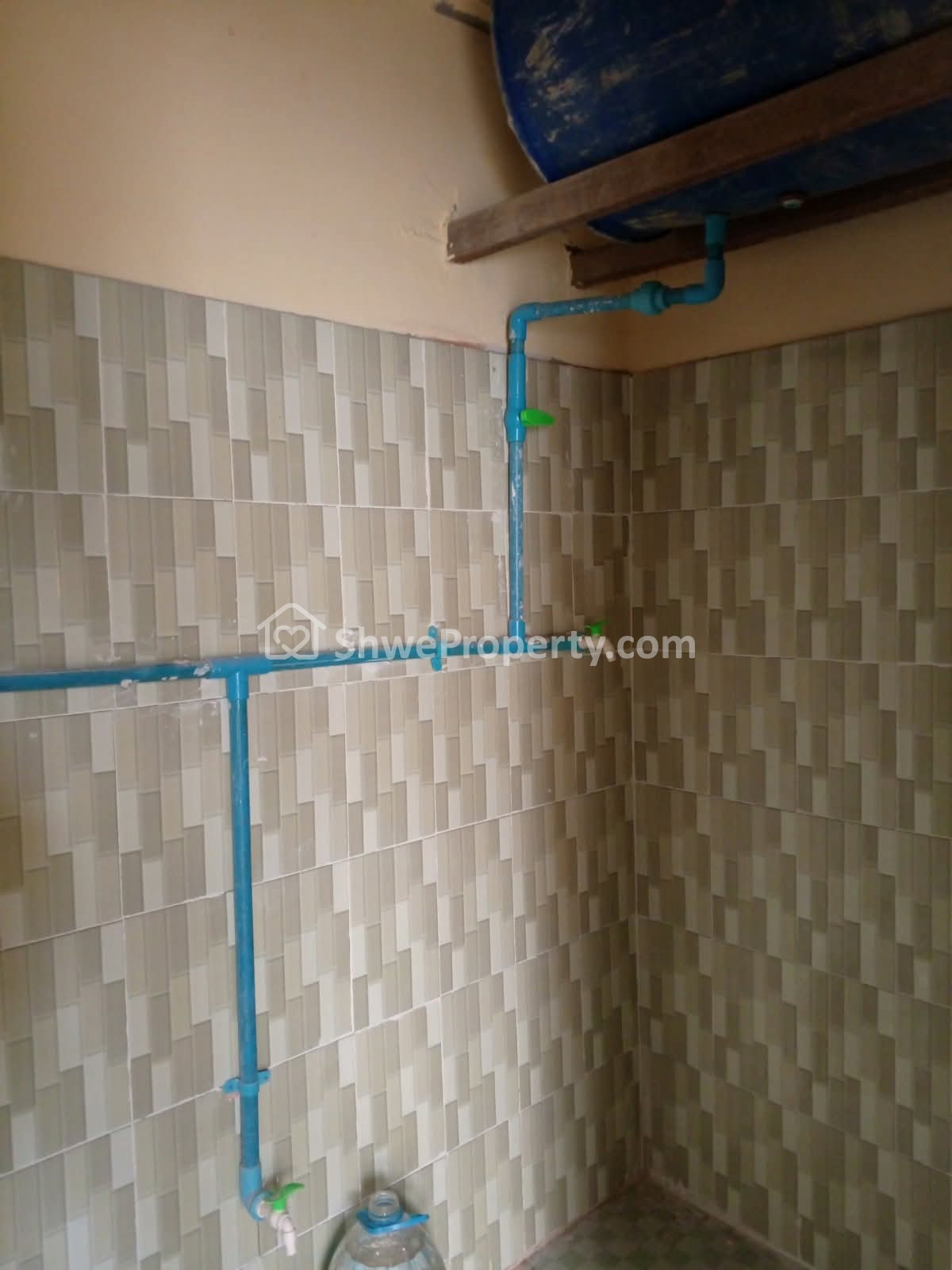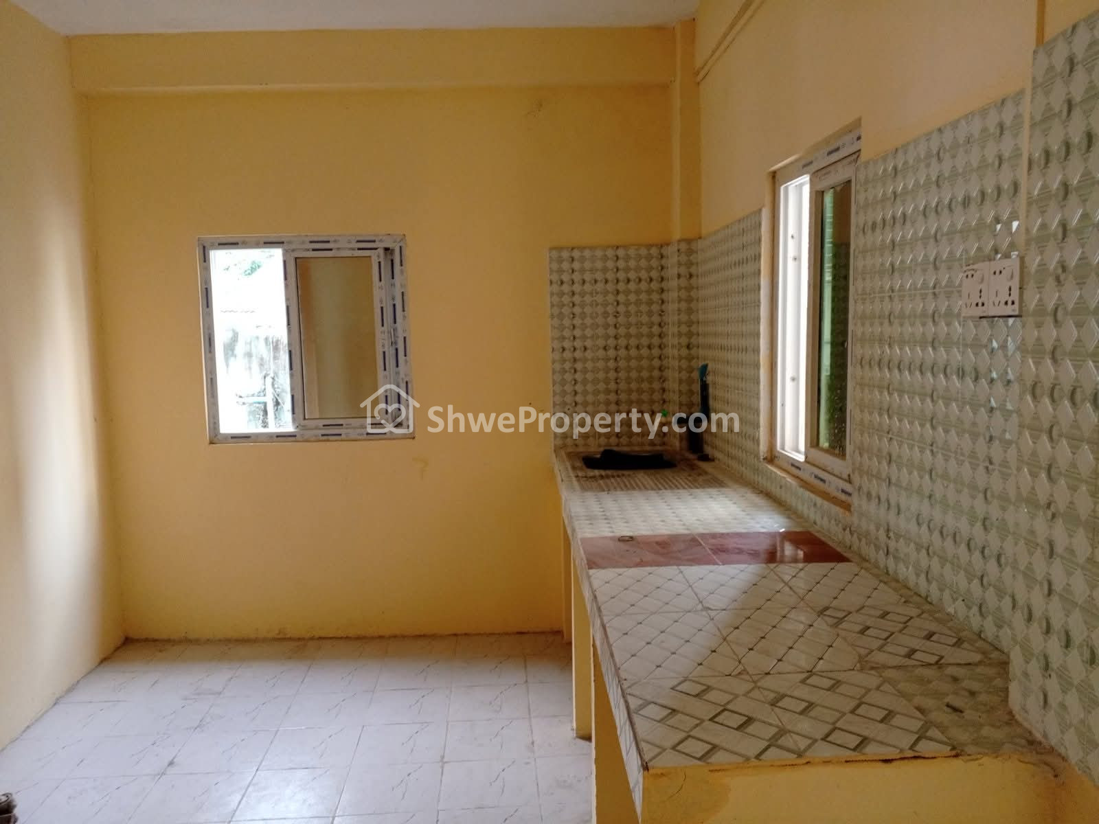 ✅ ဗိုလ်ထိုင်အိမ်သာ၊ ရေချိုးခန်းနံရံကပ်ကြွေပြား အမြင့် ၅ ပေ၊ မီးဖိုခုံကြွေပြားခင်းပြီး
