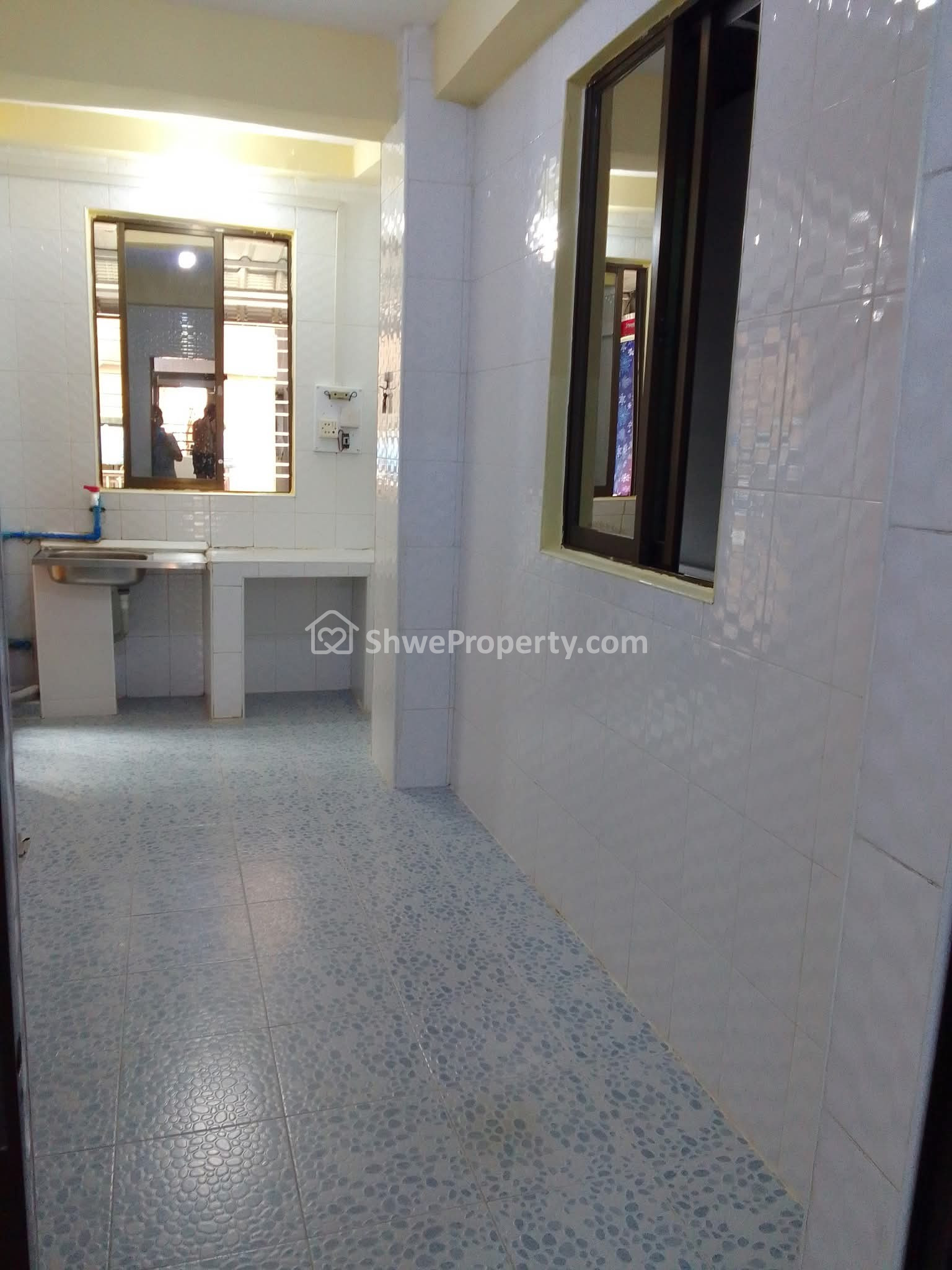 ဝရန်တာ မီးဖိုခန်း ရေချိုးခန်း ဘိုထိုင်အိမ်သာကြွေပြားခင်းထား နံရံကြွေပြားကပ်ထားသည်။