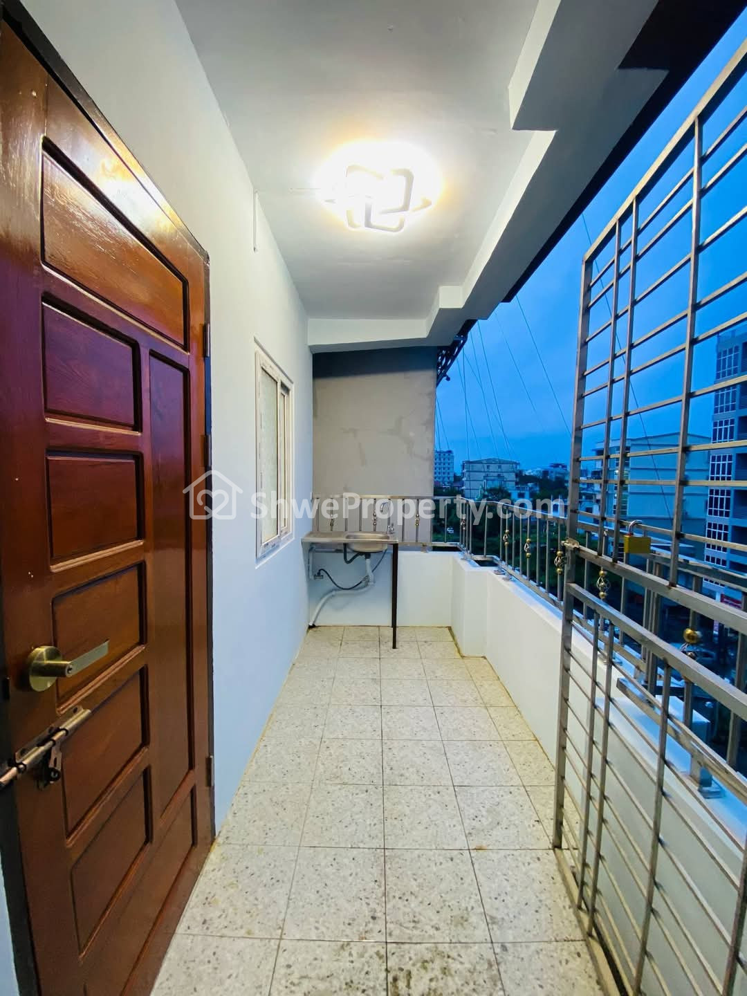 အိမ်ရှေ့၀ရံတာ၊ ရေချိုးခန်း/ ဘိုထိုင်အိမ်သာ ကြွေပြား ခင်းပြီး၊ကပ်ပြီး
