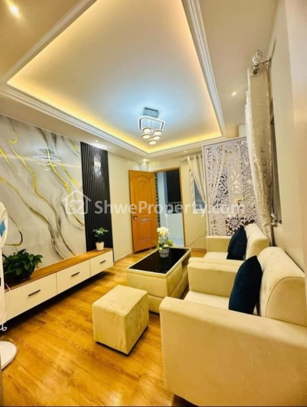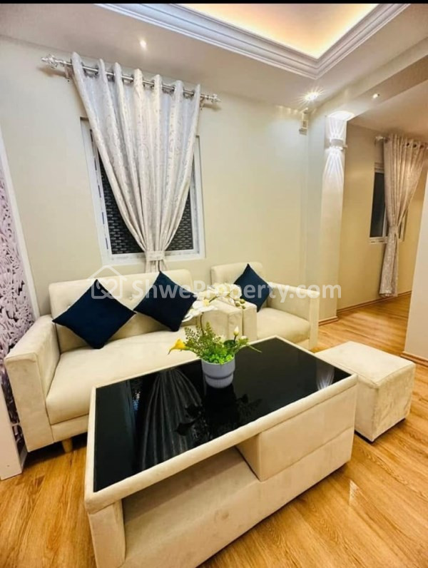 2BR, ပါကေးခင်း၊ ဘုရားစင်၊ တီဗီစင်၊ ဆိုဖာဆက်တီ၊ ခန်းစီးလိုက်ကာ၊ မီးလိုက်တင်မျက်နှာကျက်၊ မီးဆိုင်း မီးအလှများတပ်ဆင်ထား၊ မီးဖိုခန်းဆလိုက်ဒိုးတံခါးများတပ်ဆင်ထား၊ ဆေးလိုင်းအသစ်၊